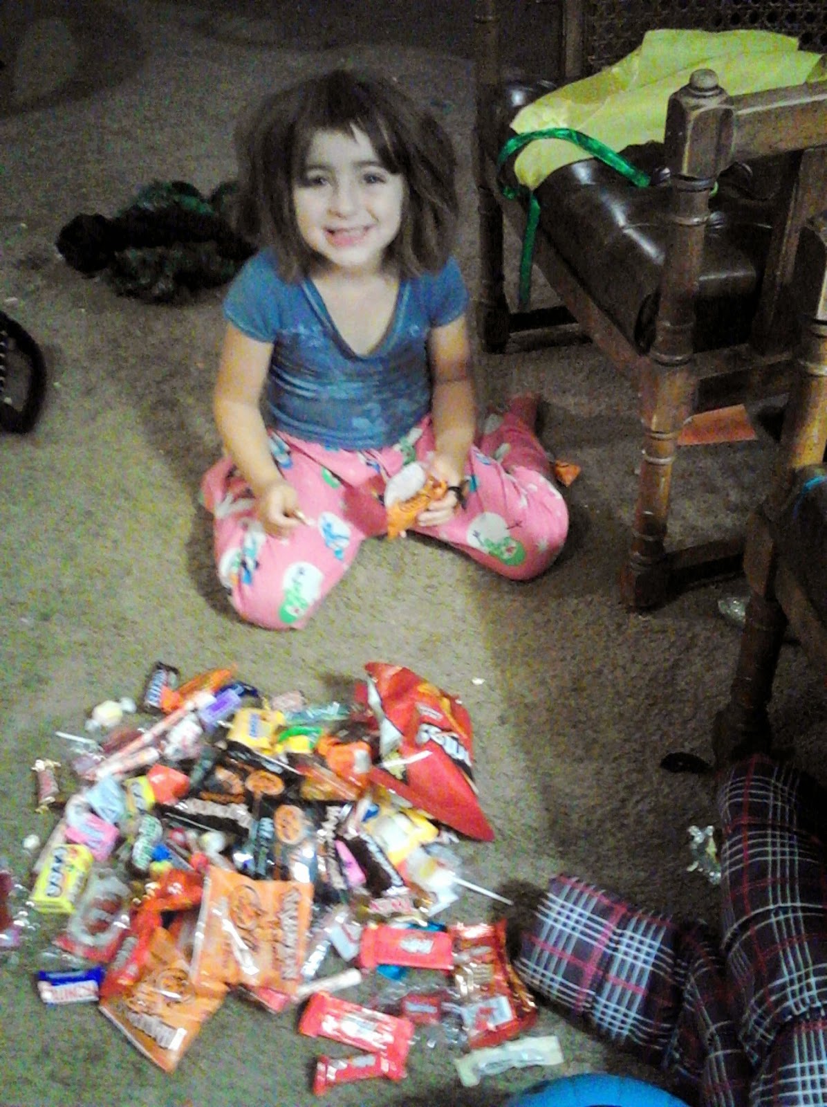 Mike had to work so Mason stood home to pass out candy. He only agreed to do this if he got a cut of the collected candy. So everyone agreed... hustler!